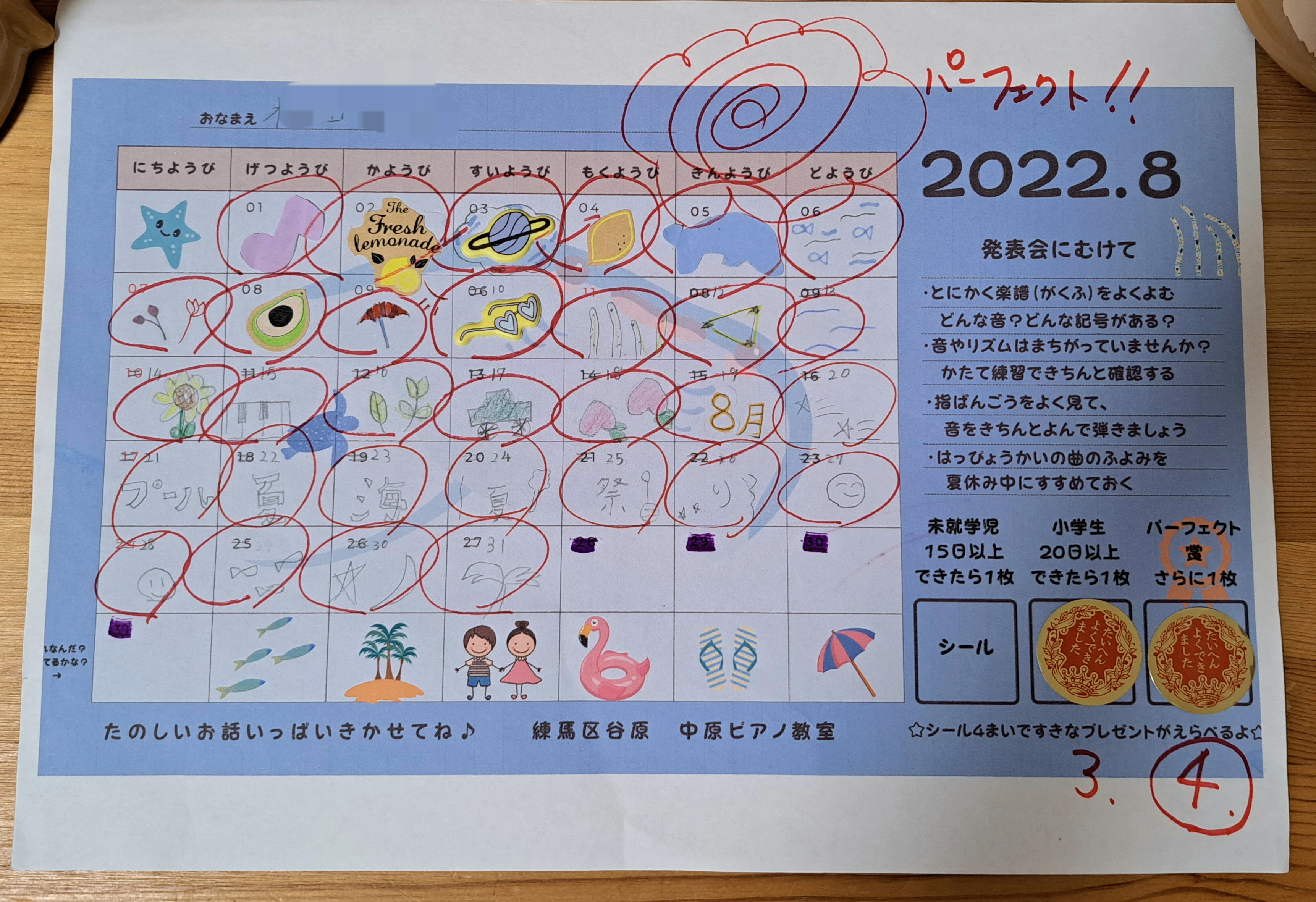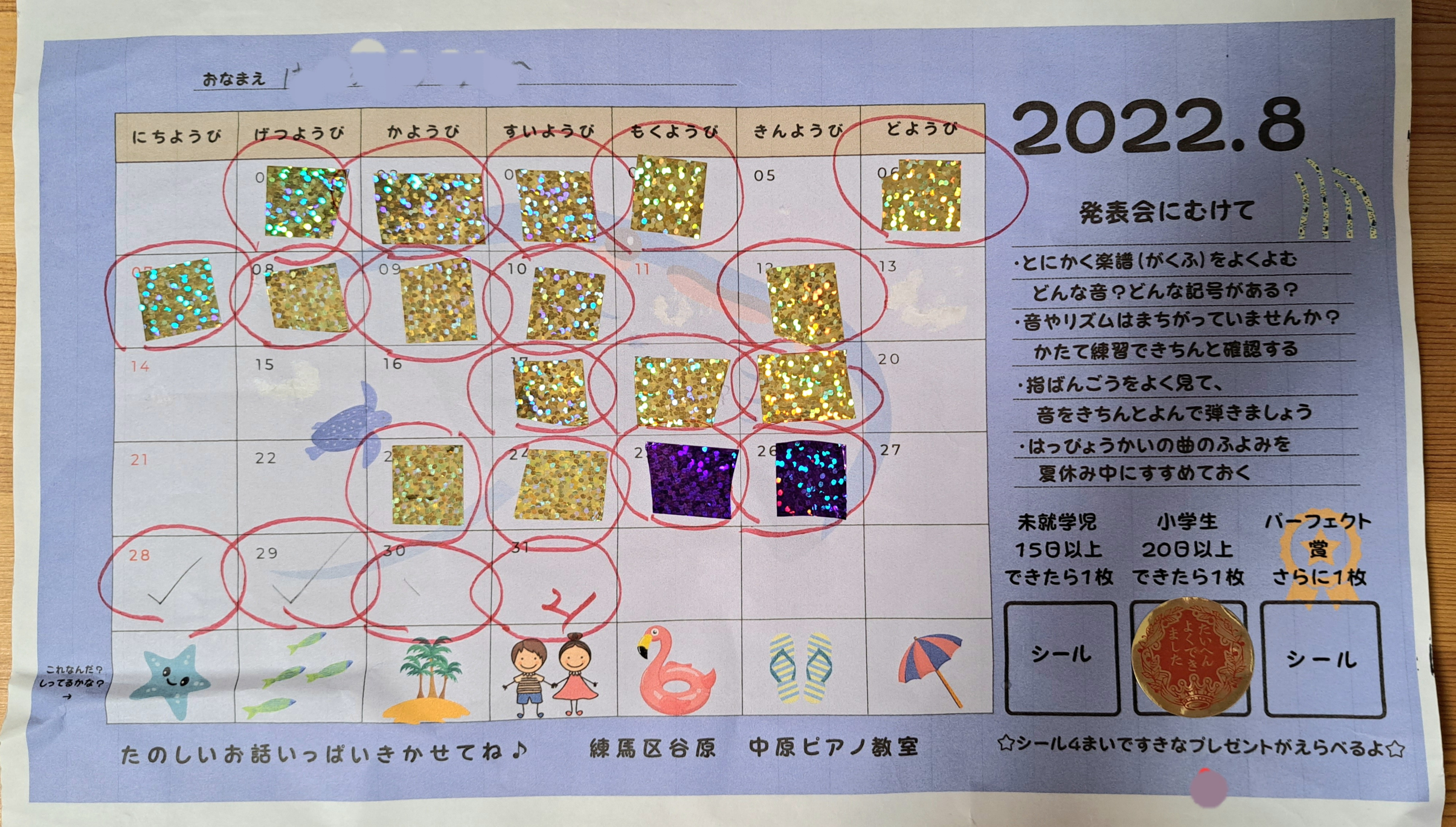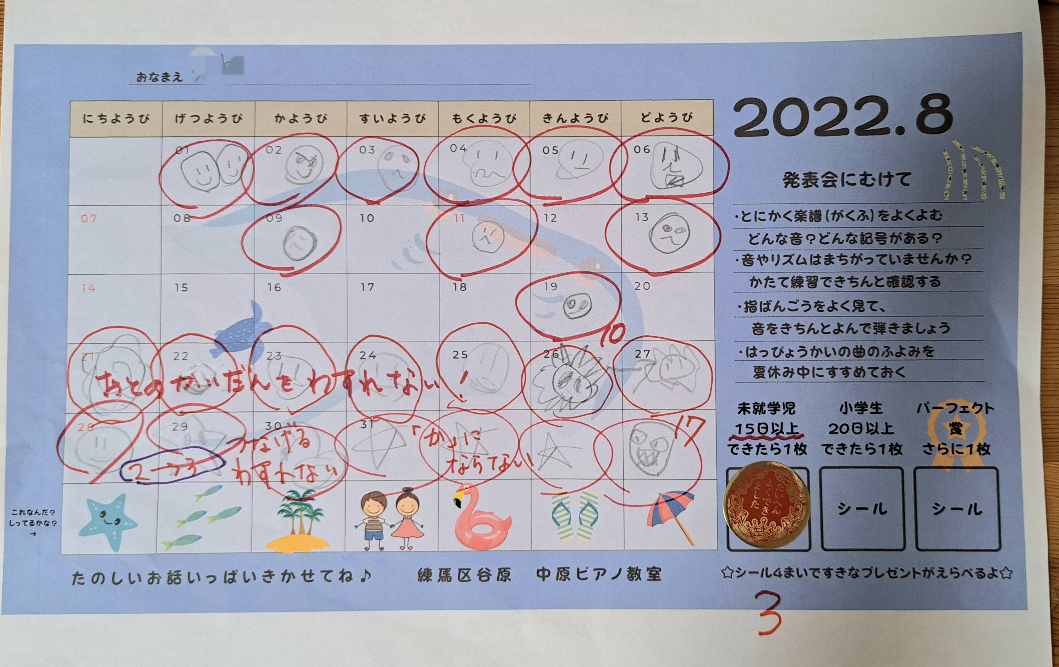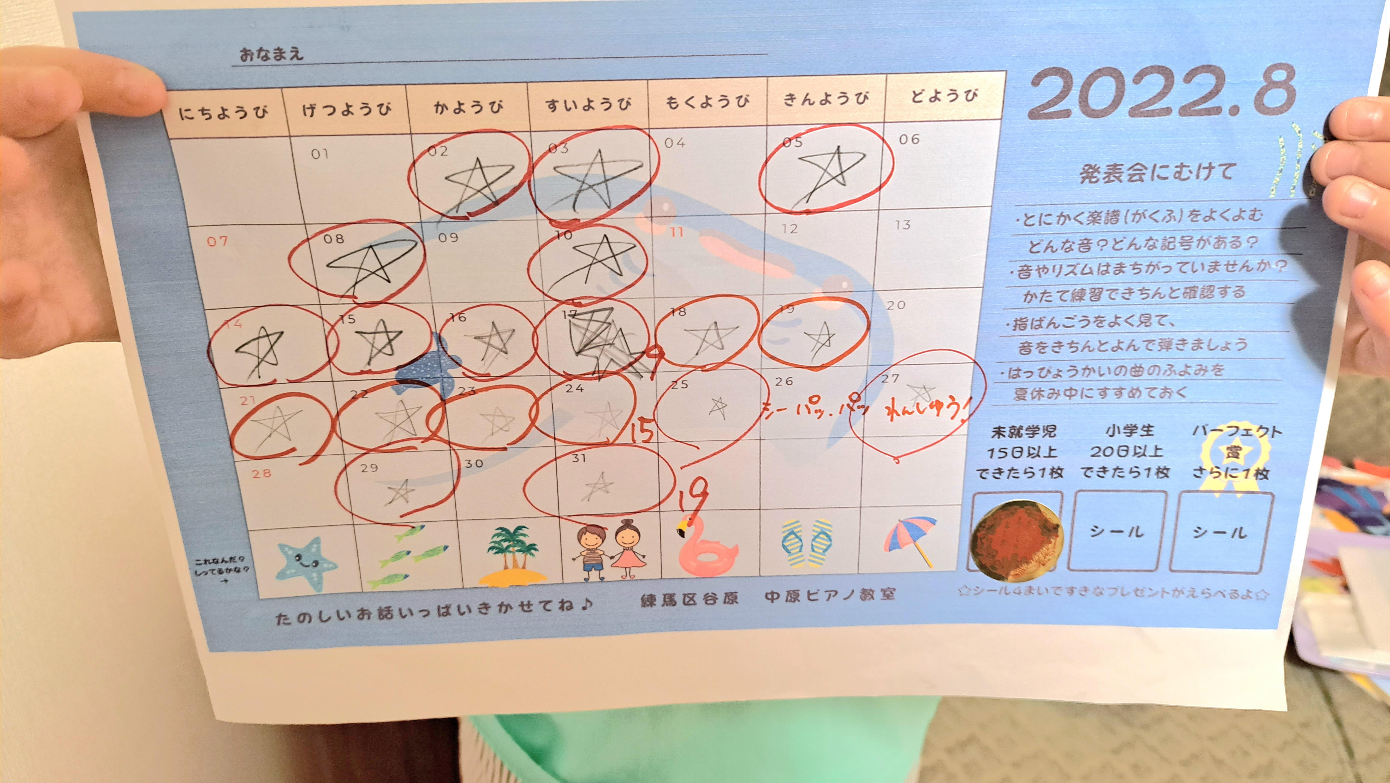ピアノ練習カレンダーを作るにあたり、ある生徒さんと話をしていました。
