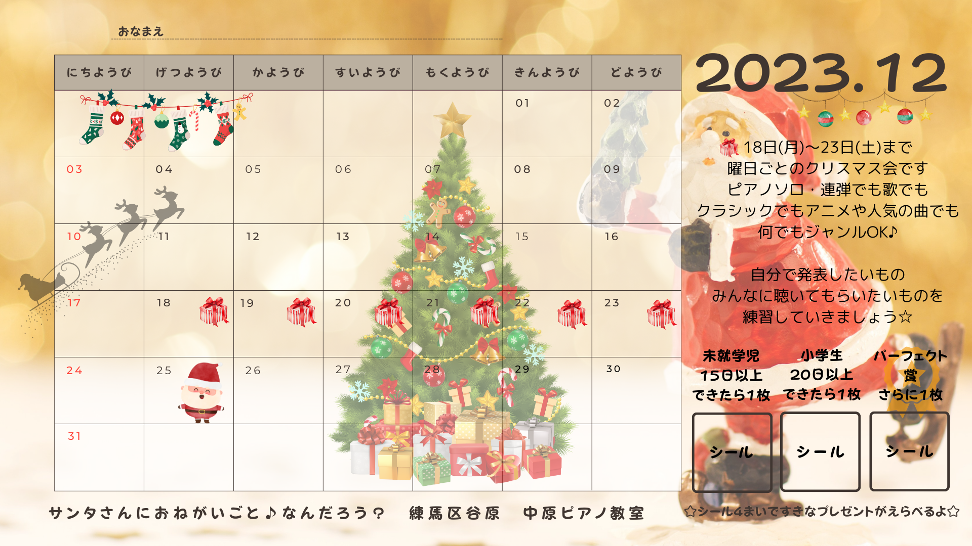 ◆12月の練習カレンダー◆