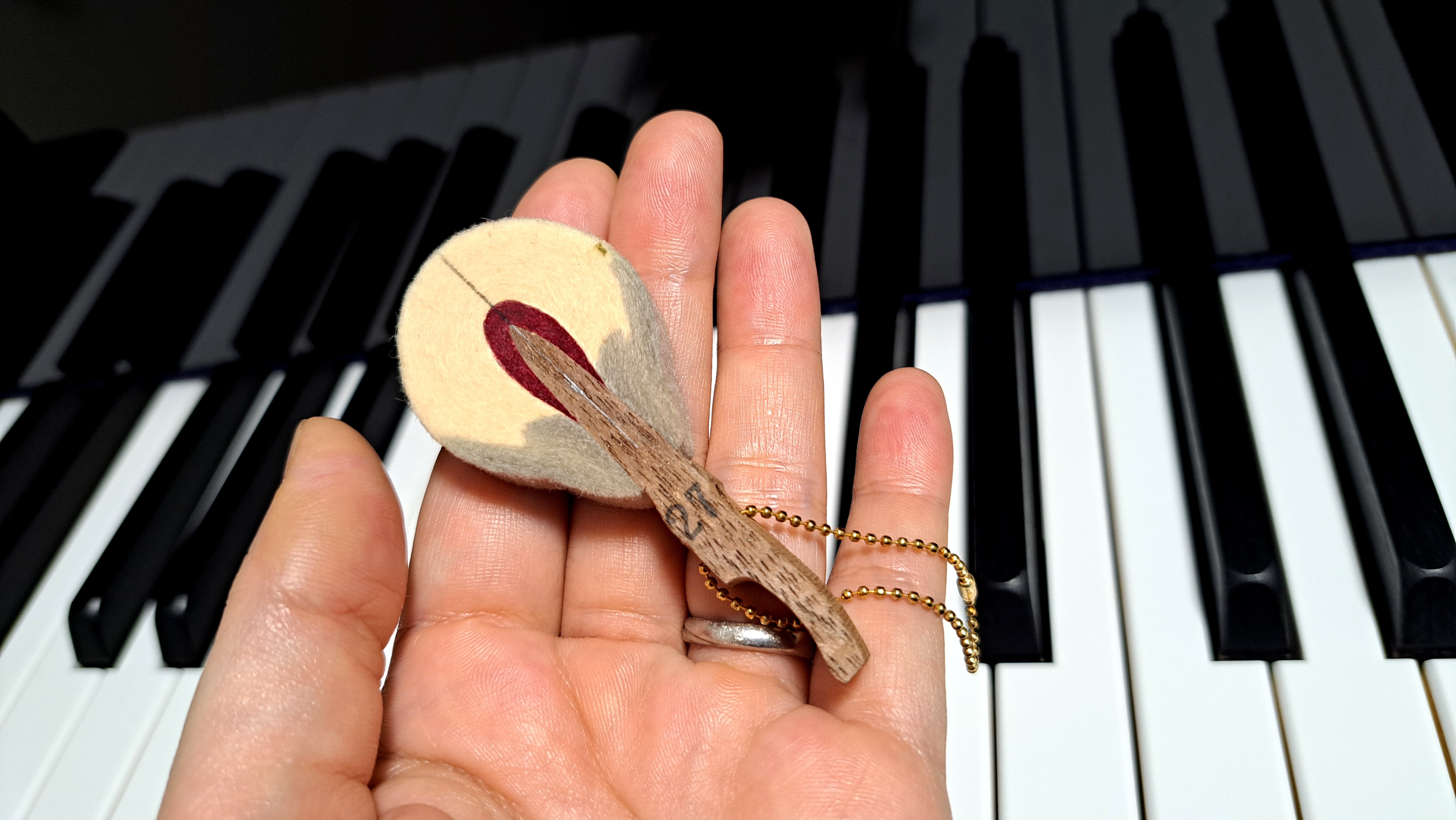 ハンマー(ピアノに使われている部品)のキーホルダーを