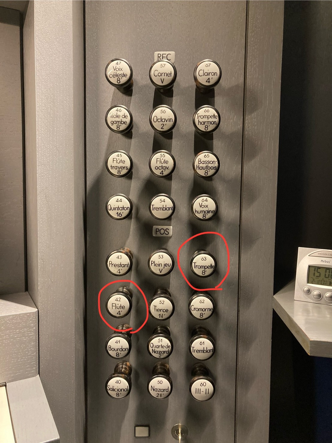 ⭕️で囲ったのがフルートとトランペットの音色が出るストップレバー。