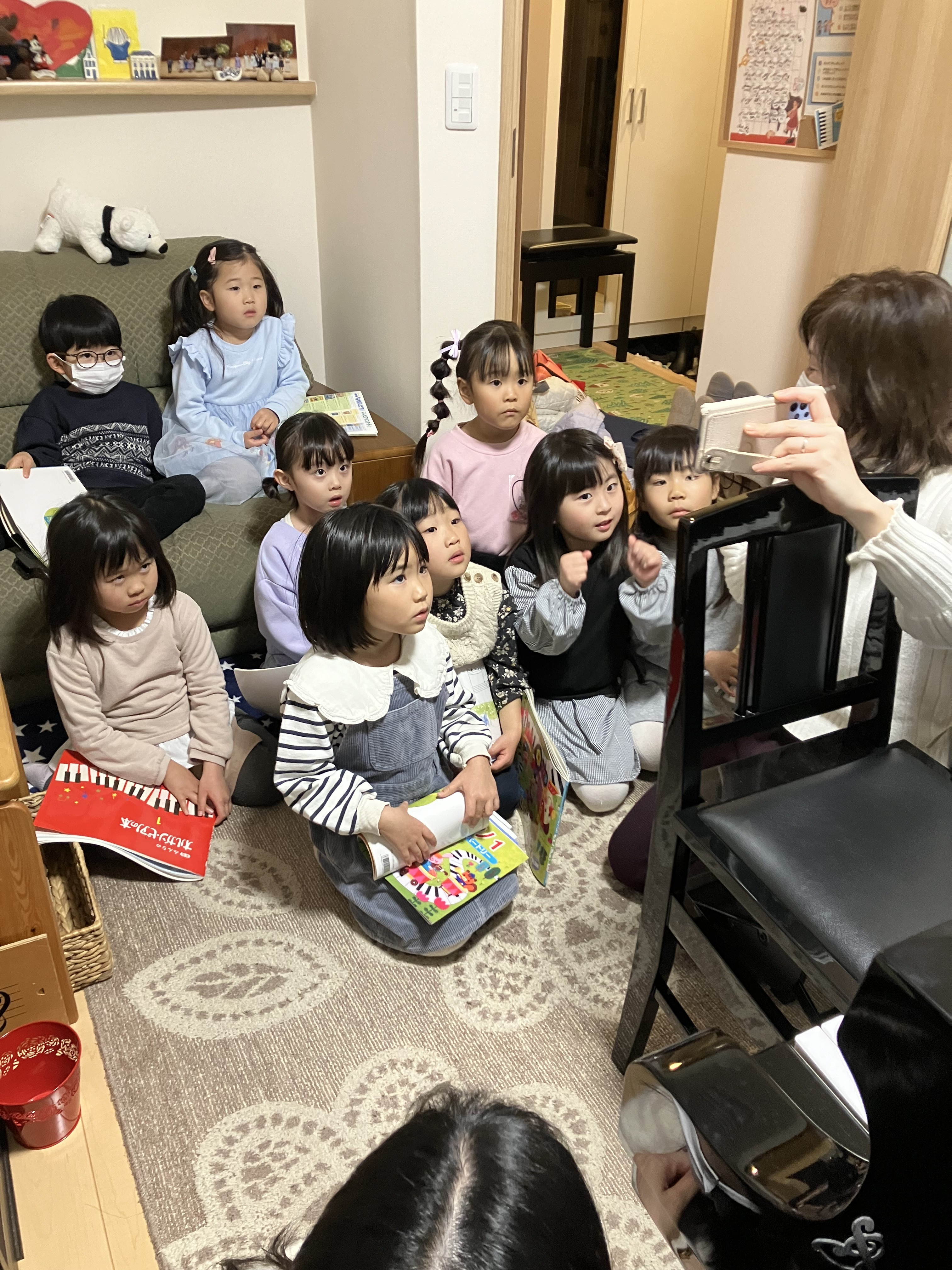 お友だちの発表時に同じテキストのその曲を覚えているので、