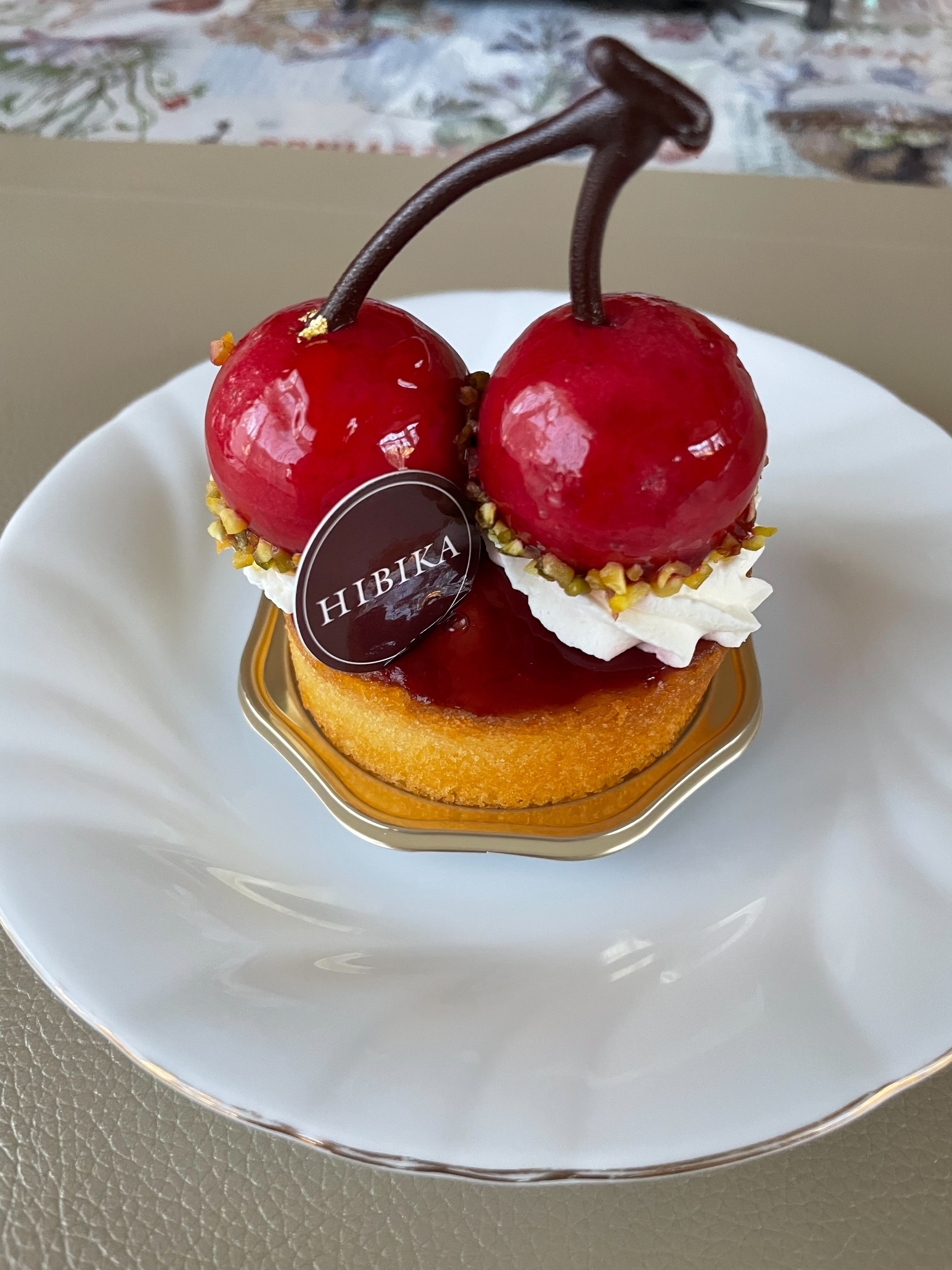 見た目が可愛らしく食べるのがもったいないケーキ🍒
